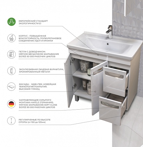 В комплекте: тумба, раковина, ножка (4 шт.).