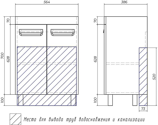 - Система хранения: 2 распашные дверцы, 1 внутренняя полка.