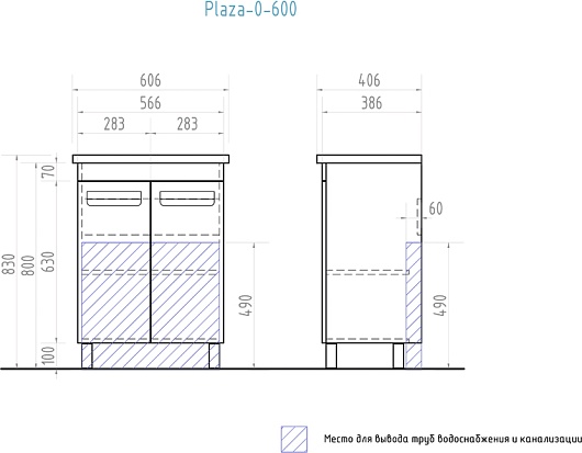 Тумба с раковиной Vigo Plaza 600-2-0 - арт. 023 / S-UM-COM60/1-w VIGO.