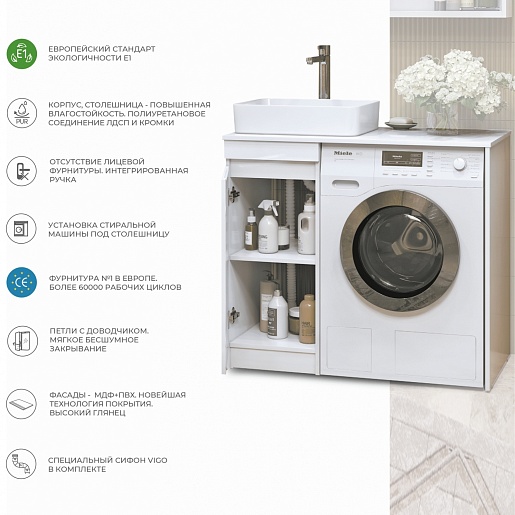 Vigo Тумба с раковиной Urban 400-1-0 со столешницей под стиральную машину белая