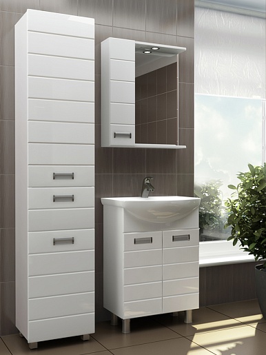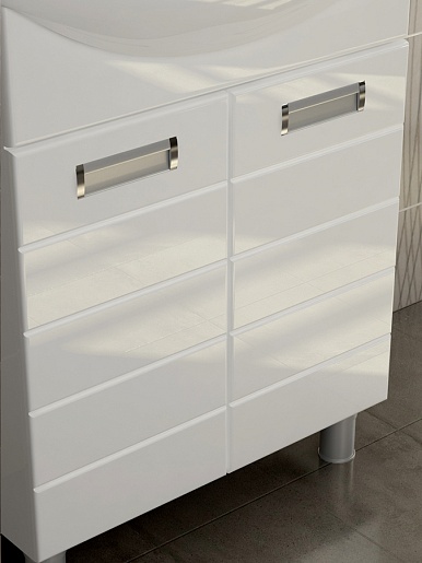 - тумба под раковину: 2 распашные дверцы с механизмом плавного закрывания, 2 металлические врезные ручки (хром), регулируемые ножки