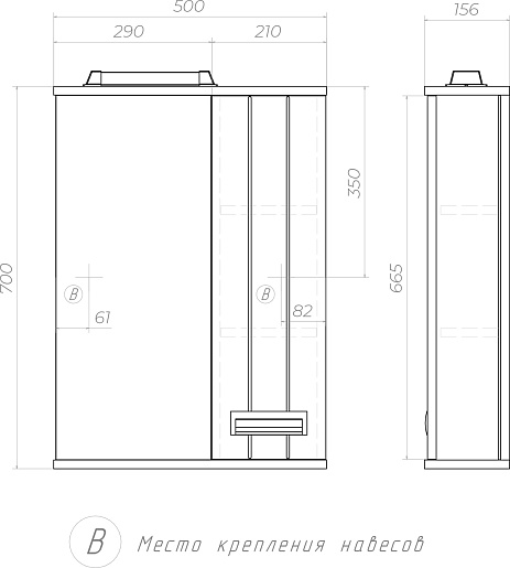 - Размеры (ШхГхВ): 505х156х700 мм.