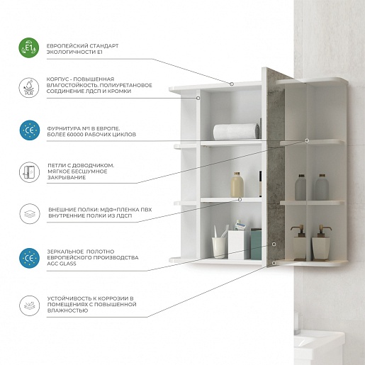 - Материал корпуса/фасада: ЛДСП / МДФ, зеркало.