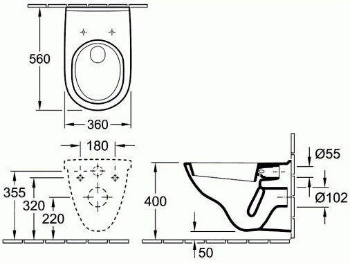 - Чаша подвесного унитаза O'Novo 5660 H1 R1 с грязеотталкивающим покрытием CeramicPlus