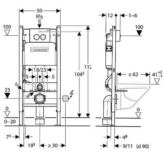 Система инсталляции Duofix Delta 458.124.21.1 3 в 1 с кнопкой смыва