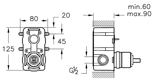 - Встраиваемый смеситель для ванны/душа