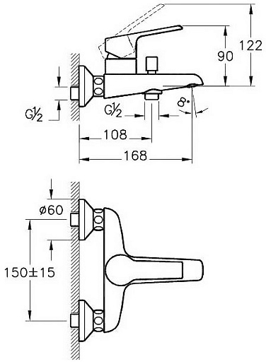 - настенный монтаж на два отверстия