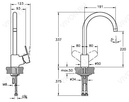 - излив 191 мм