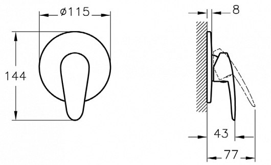 - скрытая часть A42213EXP устанавливается при монтаже стены