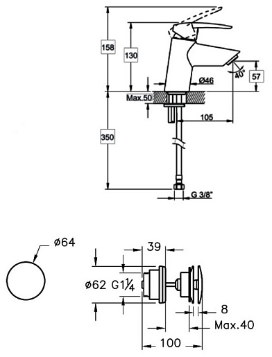 - монтаж на одно отверстие