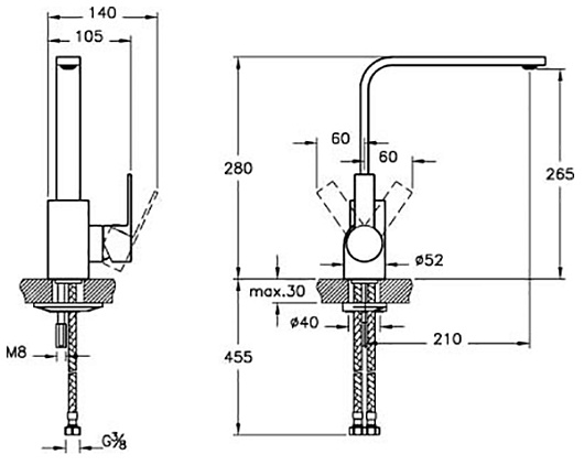 - гибкая подводка G3/8''