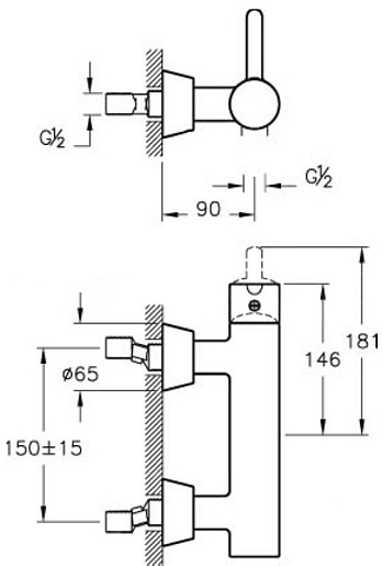 - настенный монтаж на два отверстия