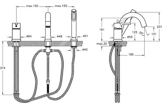 - Sense ручной душ и шланг chroma-tech в комплекте