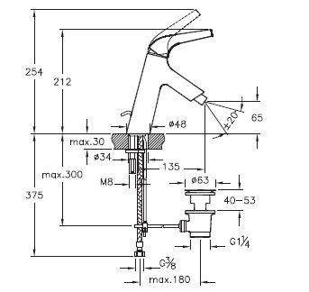 Высота излива, мм: