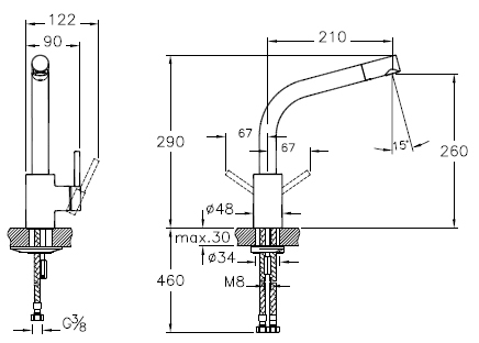 - гибкая подводка G3/8''