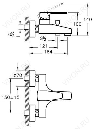 - излив 164 мм