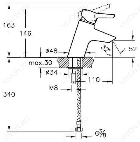 - гибкая подводка G3/8''