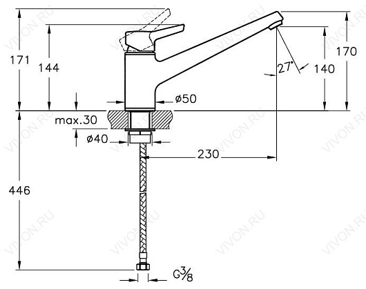 - специальный аэратор с ограничением потока мин. 7,5 л.-макс. 9 л. в мин.