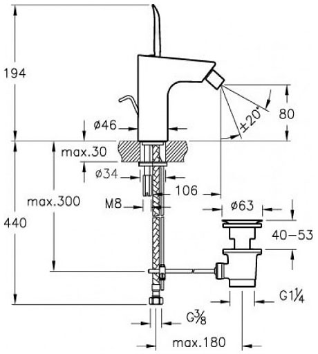 Высота излива, мм: