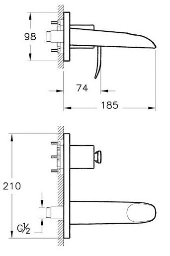 • монтаж настенный на два отверстие