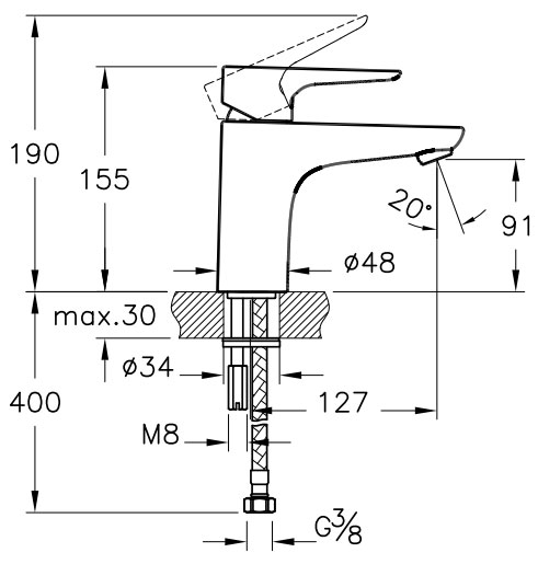 - гибкая подводка G3/8''