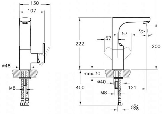 - монтаж на одно отверстие