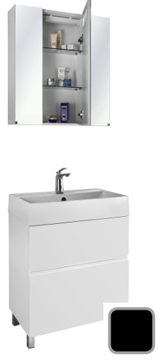 - Зеркальный шкаф Мальта 70 черный: влагостойкое зеркало, галогенная подсветка, розетка и выключатель.