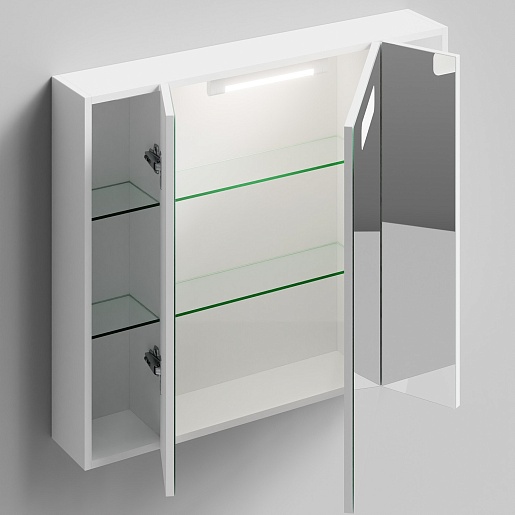 - Зеркальный шкаф Мальта 90 белый: влагостойкое зеркало, галогенная подсветка, розетка и выключатель.