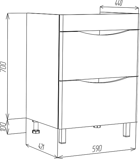 В комплекте: тумба, раковина, зеркало, ножка (4 шт.), комплект креплений.