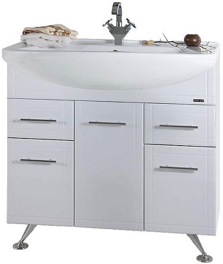 Комплектация: Тумба с раковиной, раковина Эльбрус 90, регулируемые по высоте ножки.
