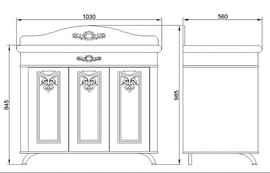 - Тумба с раковиной Анжелика 100: Умывальник врезной Vitra 6069 B003-0012 , столешница S1, тумба под раковину, исполнения фасада F-3, ручки и ножки из металла, петли с доводчиками