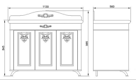 - Тумба с раковиной Анжелика 110: Умывальник врезной Vitra 6069 B003-0012 , столешница S1, тумба под раковину, фасад F-3, ручки и ножки из металла, петли с доводчиками
