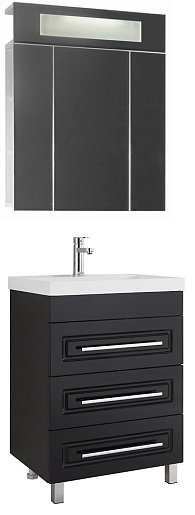 Водолей Мебель для ванной Арабеска 60 с зеркальным шкафом Квадро черная