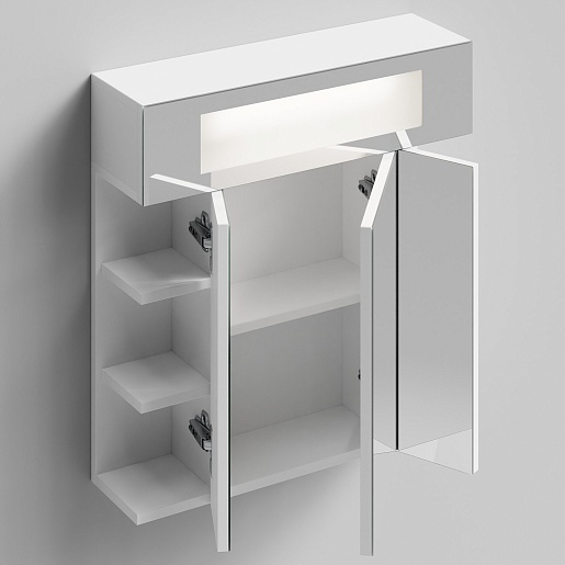 - Зеркальный шкаф Квадро 60: влагостойкое зеркало, шкафчики, подсветка.