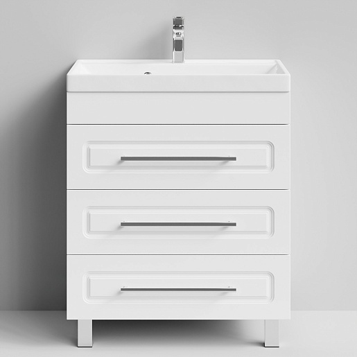 - Тумба с раковиной Арабеска 70: умывальник Classic 70 (литьевой мрамор), тумба под раковину, ручки и ножки из металла, петли и ящики с доводчиками.