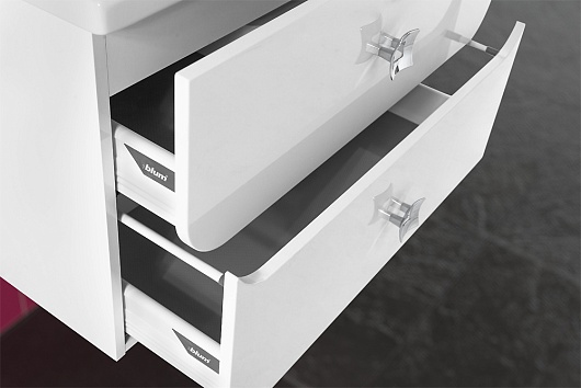 Описание: два ящика. Тумба с умывальником Myjoys Euphoria 80. Корпус и фасад окрашенный МДФ (5 слоев, покраска SAYERLACK Италия), ящики оборудованы направляющими скрытого монтажа с доводчиками фирмы Blum (Австрия).