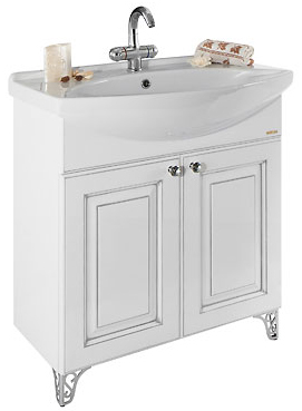 - Тумба с раковиной Белладжио 75: раковина Стиль 75, распашная дверца - 2 шт., вкладная полка, ручка (металл, стекло) - 2 шт., ножки хром.