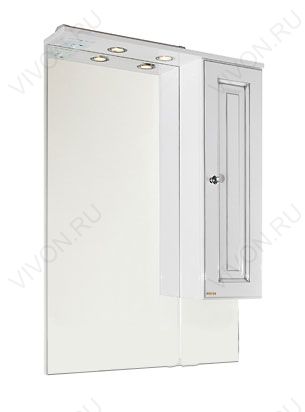 - Зеркальный шкаф Белладжио 75 R: распашной шкаф, петли с доводчиками, ручка (металл, стекло), галогенный светильник - 2 шт., выключатель и розетка