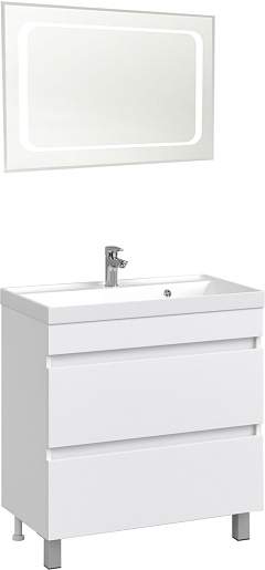 В комплекте: тумба, раковина, зеркало, ножка (4 шт.), комплект креплений.