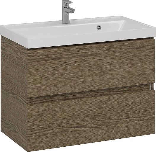 Подвесная тумба с раковиной Водолей Best 80 дуб крымский коричневый.