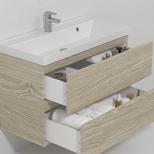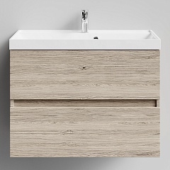 Подвесная тумба с раковиной Водолей Best 80 ореховый дубослив светлый.