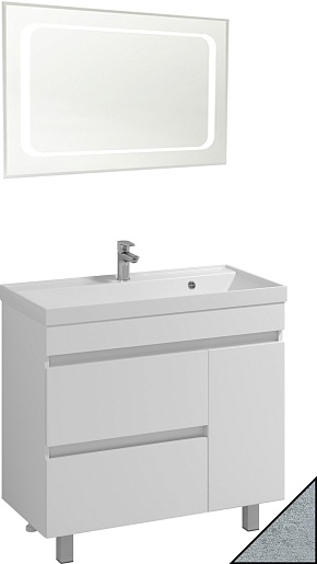 В комплекте: тумба, раковина, зеркало, ножка (4 шт.), комплект креплений.