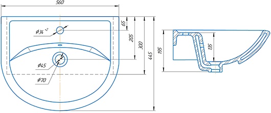 - Раковина со слив-переливом.