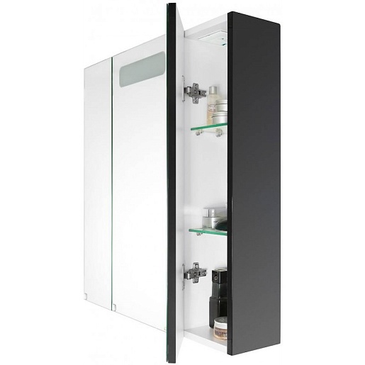 - Зеркальный шкаф Флорена 90: влагостойкие, распашные, зеркальные дверцы, стеклянные полочки. Комплектуется галогеновыми светильниками, выключателем и встроенной розеткой.