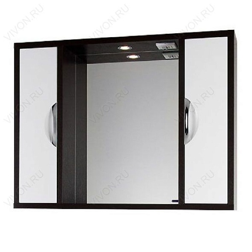 - Зеркальный шкаф Габи 120: шкаф с дверкой - 2 шт., козырёк верхний с трансформатором - 1 шт., светильник встроенный с галогенными лампочками - 1 шт., подсветка подключается к сети 220В с помощью стандартной вилки, розетка с выключателем - 1 шт., ручки - 2 шт., полочка нижняя - 1 шт.