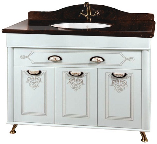- Тумба с раковиной Изабель 120: раковина Gustavsberg (размер: 500х350х215), столешница S1, тумба под раковину, фасад F-3, ручки и ножки из металла, петли с доводчиками