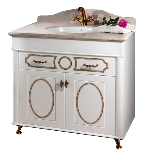 - Тумба с раковиной Изабель 90: раковина Gustavsberg (размер: 500х350х215), столешница S1, тумба под раковину, фасад F-1, ручки и ножки из металла, петли с доводчиками