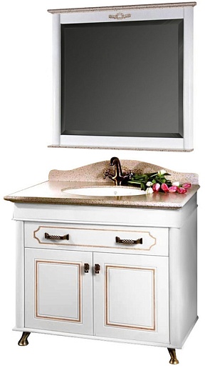 - Тумба с раковиной Изабель 90: раковина Gustavsberg (размер: 500х350х215), столешница S1, тумба под раковину, фасад F-2, ручки и ножки из металла, петли с доводчиками