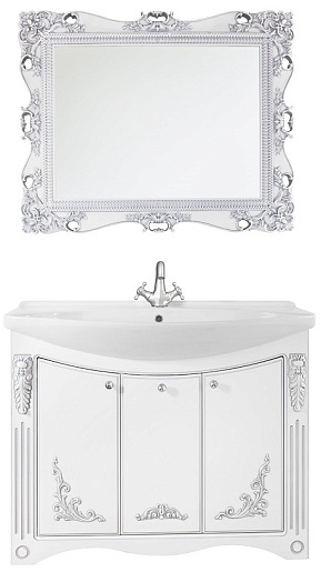 Водолей Мебель для ванной "Кармен 105" белая/серебро, зеркало в раме