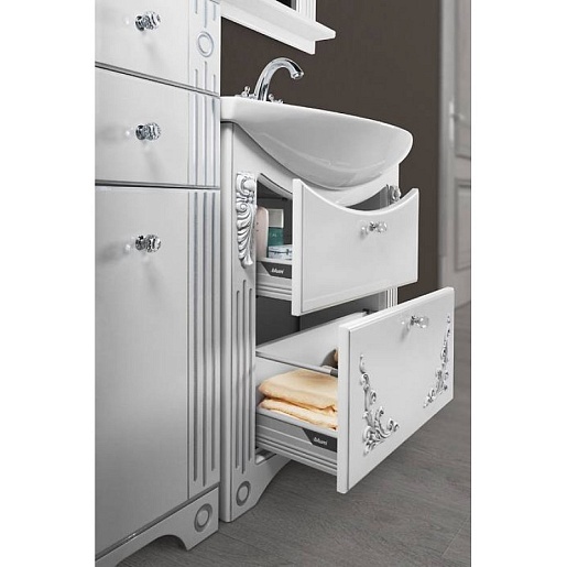 Тумба под раковину Кармен 65 с ящиками, белая/серебро